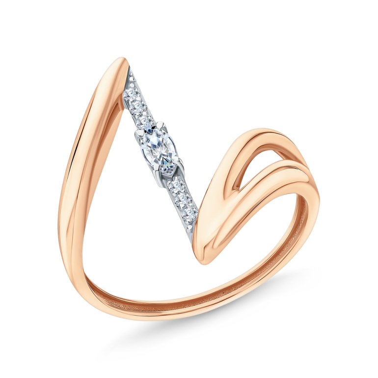Кольцо, вставка: фианитом бесцветным; Розовое золото 585 пробы.