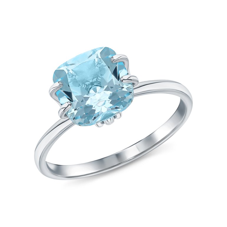 Кольцо с 1 топазом скай природным, 3.68 карат, тип огранки Б; Серебро 925 пробы.
