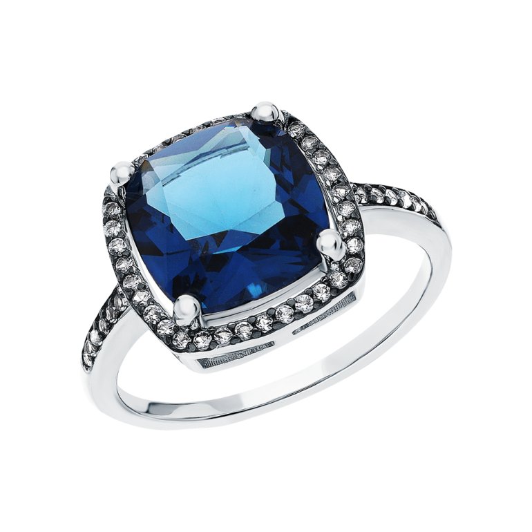 Кольцо, вставка: алпанит синий;  фианит голубой; Серебро 925 пробы.