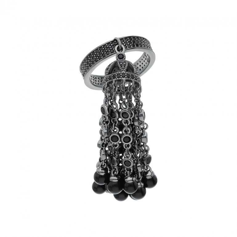 Кольцо, вставка: черным фианитом;  жемчуг черный имитация; Серебро 925 пробы.