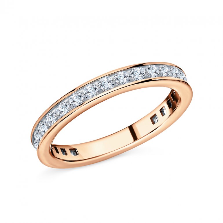 Кольцо с 23 бриллиантами, 0.469 карат, огранка круг 57 граней, цвет 3, чистота 6, тип огранки А; Розовое золото 585 пробы.