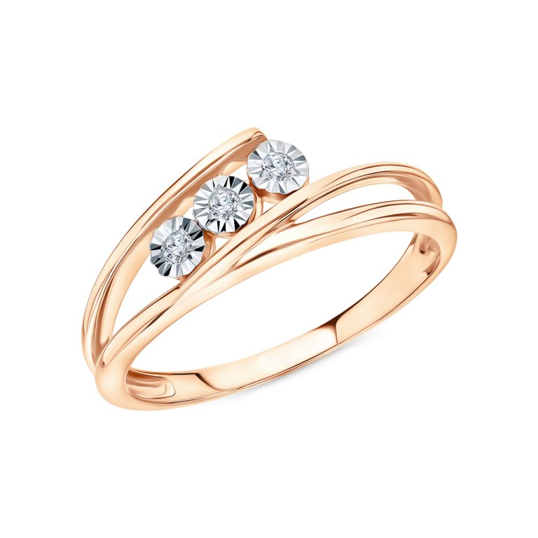 Кольцо с 3 бриллиантами природными, 0.044 карат, огранка круг 57 граней, цвет 3, чистота 6, тип огранки А; Розовое и белое золото 585 пробы.