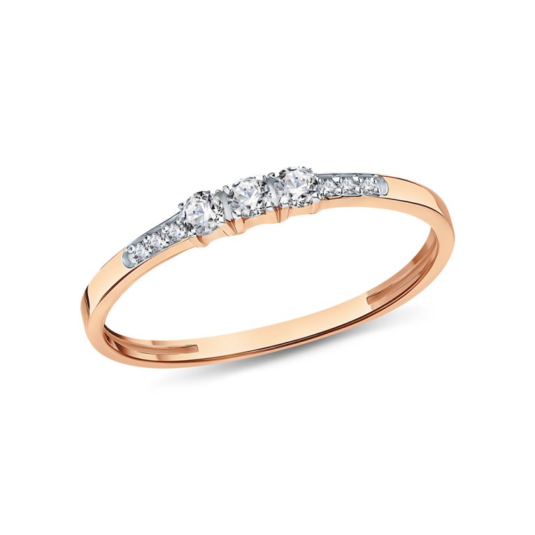 Кольцо, вставка: фианитом бесцветным; Розовое золото 375 пробы.