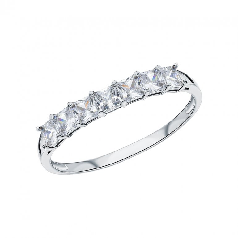 Кольцо, вставка: фианит бесцветный; Белое золото 585 пробы.