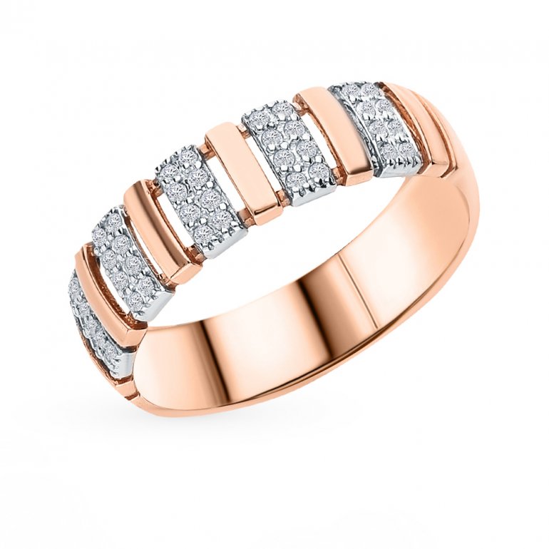 Кольцо с 40 бриллиантами природными, 0.16 карат, огранка круг 17 граней, цвет 2, чистота 2, тип огранки Б; Розовое золото 585 пробы.