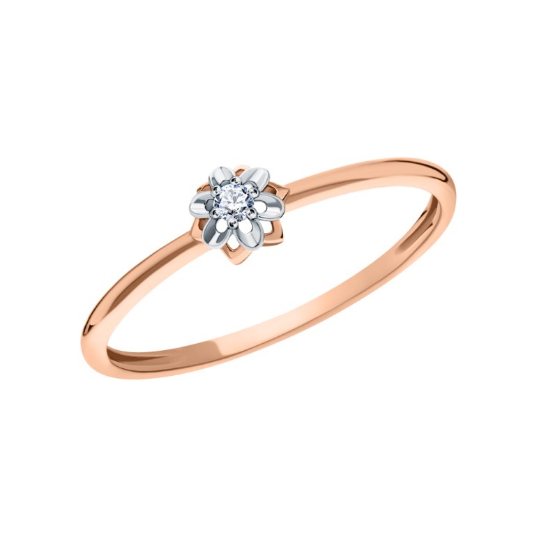 Кольцо с 1 бриллиантом природным, 0.028 карат, огранка круг 57 граней, цвет 4, чистота 6, тип огранки А; Розовое золото 585 пробы.