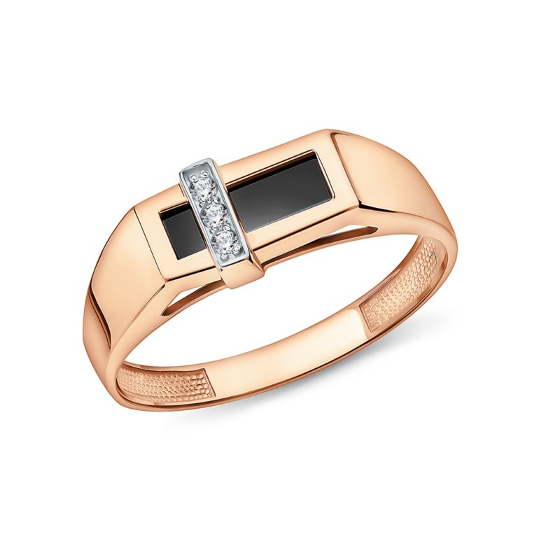 Кольцо, вставка: черным фианитом;  фианитом бесцветным; Розовое золото 585 пробы.