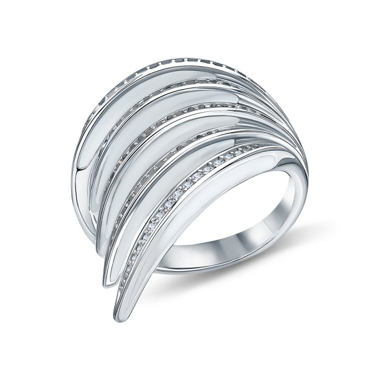 Серебряное кольцо с эмалью и фианитами S31106-K9W-01 Кольца SUNLIGHT | V4.Ru: Маркетплейс