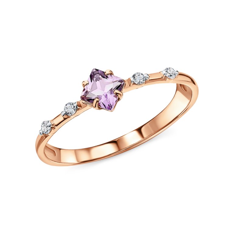 Кольцо с 1 аметистом природным, 0.27 карат, тип огранки Б; фианитом бесцветным; Серебро 925 пробы.