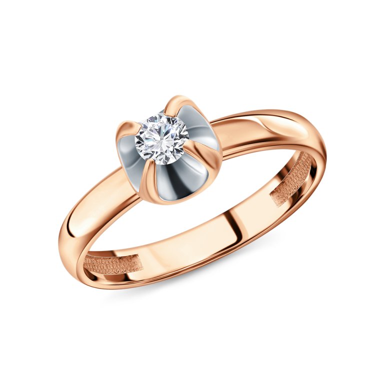 Кольцо с 1 бриллиантом природным, 0.113 карат, огранка круг 57 граней, цвет 4, чистота 6, тип огранки А; Розовое золото 585 пробы.