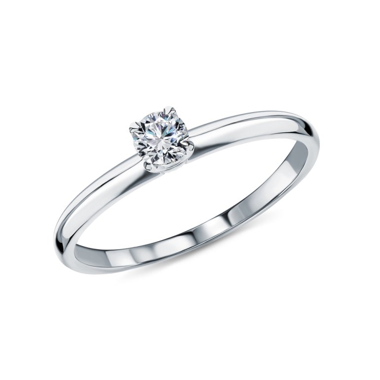 Кольцо с 1 бриллиантом природным, 0.23 карат, огранка круг 57 граней, цвет 3, чистота 6, тип огранки А; Белое золото 585 пробы.