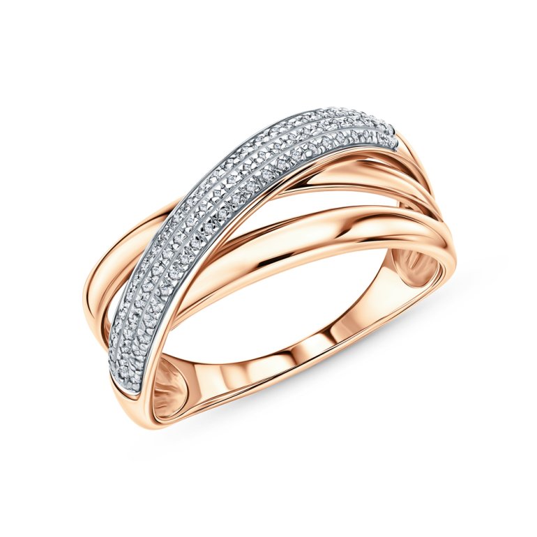 Кольцо с 73 бриллиантами природными, 0.129 карат, огранка круг 17 граней, цвет 2, чистота 3, тип огранки Б; Розовое золото 585 пробы.