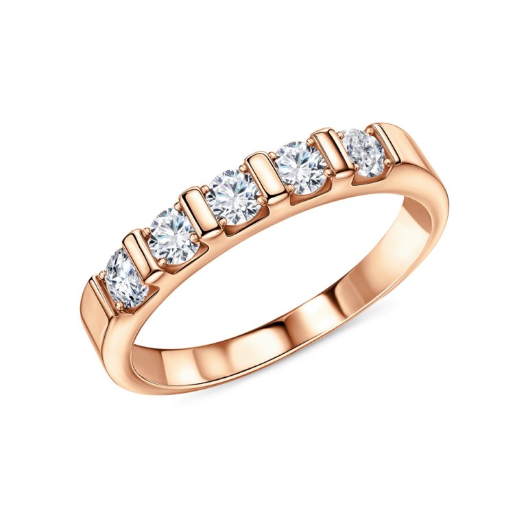 Кольцо с 5 бриллиантами природными, 0.41 карат, огранка круг 57 граней, цвет 3, чистота 6, тип огранки А; Розовое золото 585 пробы.