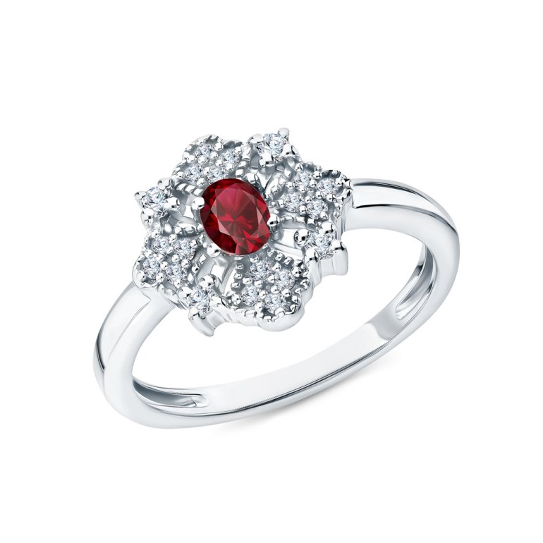 Серебряное кольцо с фианитами и рубином природным S43041-K9W-01 Кольца SUNLIGHT | V4.Ru: Маркетплейс