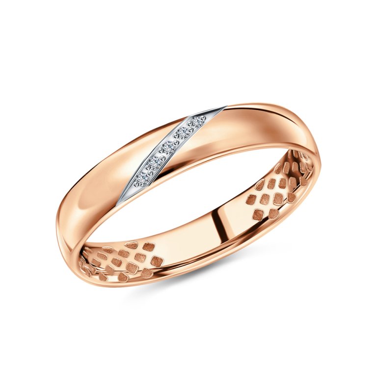 Кольцо с 5 бриллиантами, 0.014 карат, огранка круг 17 граней, цвет 2, чистота 2, тип огранки Б; Розовое золото 585 пробы.