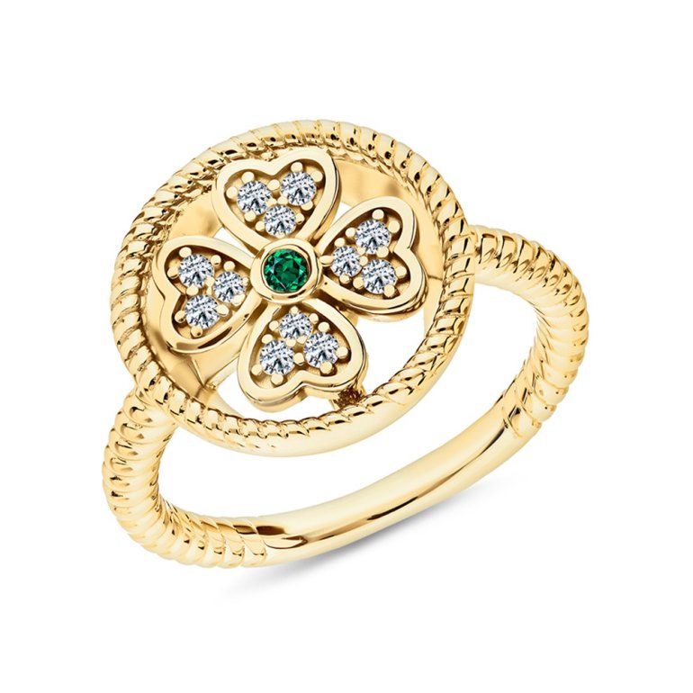 Кольцо, вставка: фианит зеленый;  фианитом бесцветным; Серебро 925 пробы.
