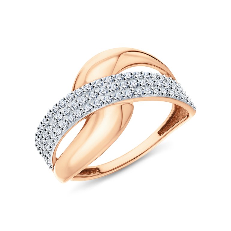 Кольцо, вставка: фианитом бесцветным; Розовое золото 585 пробы.