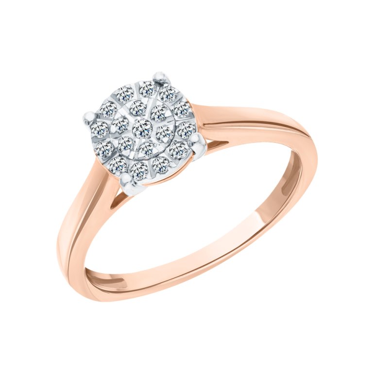 Кольцо с 1 бриллиантом природным, 0.008 карат, огранка круг 57 граней, цвет 3, чистота 6, тип огранки А; 18 бриллиантами природными, 0.062 карат, огранка круг 17 граней, цвет 2, чистота 2, тип огранки А; Розовое и белое золото 585 пробы.