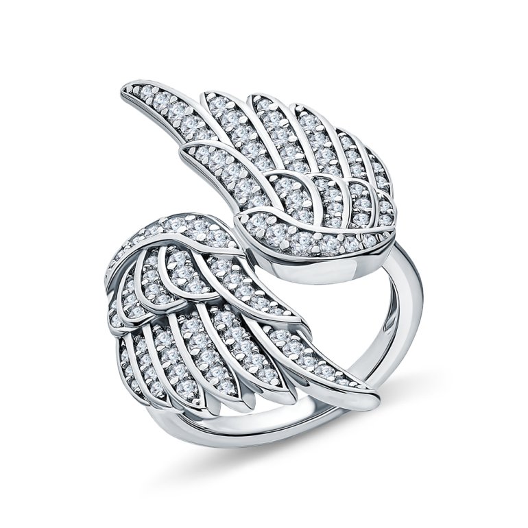 Кольцо, вставка: фианитом бесцветным; Серебро 925 пробы.