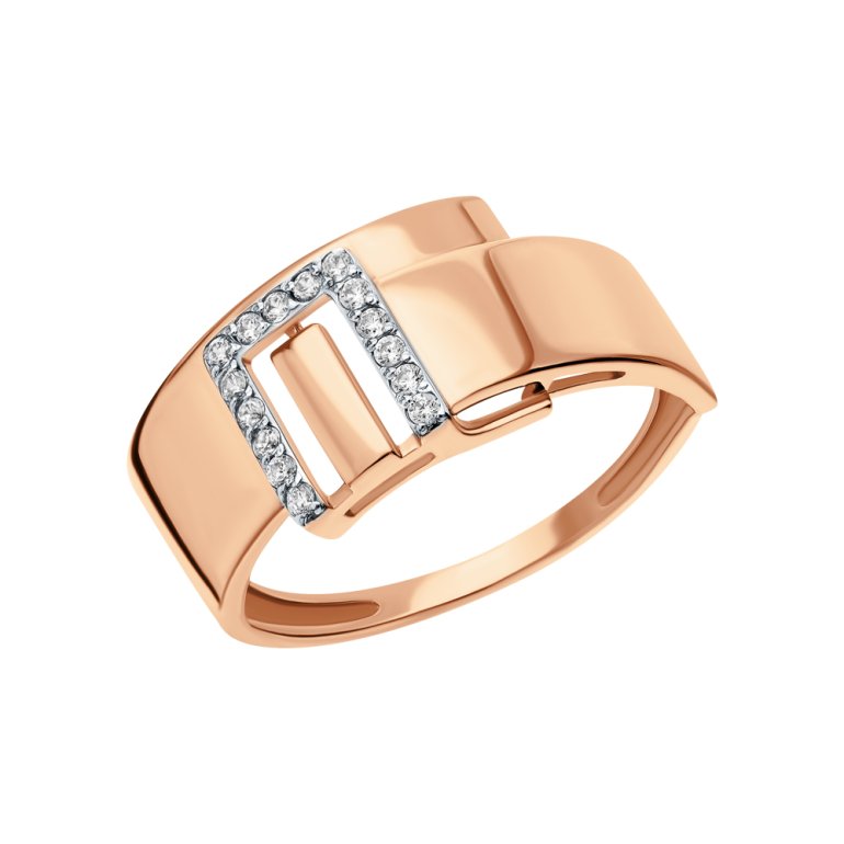 Кольцо, вставка: фианит бесцветный; Розовое золото 585 пробы.