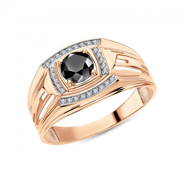 Кольцо, вставка: фианит бесцветный;  фианит черный; Розовое золото 585 пробы.