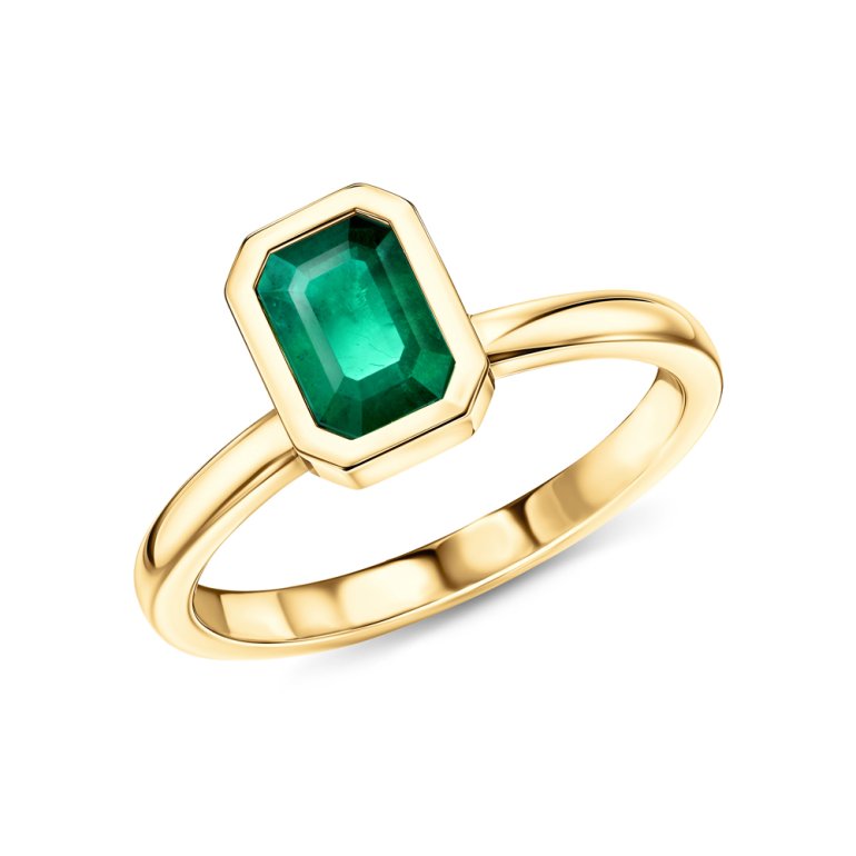 Кольцо с 1 изумрудом природным, 0.911 карат, цвет 3, чистота 3, тип огранки Б; Желтое золото 585 пробы.