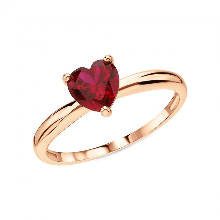 Кольцо с 1 рубином синтетическим, 0.959 карат, тип огранки Б; Розовое золото 585 пробы.