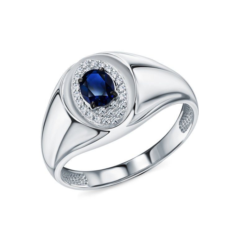 Кольцо с 20 бриллиантами природными, 0.07 карат, огранка круг 17 граней, цвет 2, чистота 2, тип огранки А; 6 бриллиантами природными, 0.015 карат, огранка круг 17 граней, цвет 2, чистота 2, тип огранки А; 1 сапфиром природным, 0.419 карат, цвет 2, чистота 2, тип огранки Б; Белое золото 585 пробы.