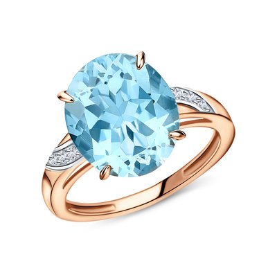 Кольцо с 6 бриллиантами природными, 0.047 карат, огранка круг 17 граней, цвет 2, чистота 2, тип огранки Б; 1 топазом, 6.134 карат, тип огранки Б; Розовое золото 585 пробы.