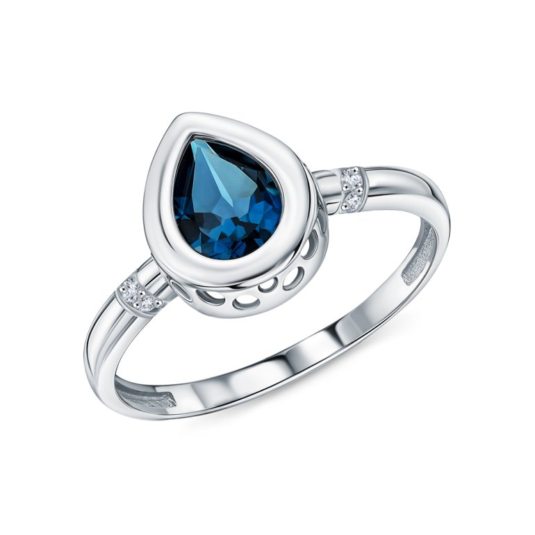 Кольцо с 6 бриллиантами природными, 0.03 карат, огранка круг 17 граней, цвет 2, чистота 2, тип огранки А; 1 топазом лондон природным, 0.764 карат, тип огранки Б; Белое золото 585 пробы.