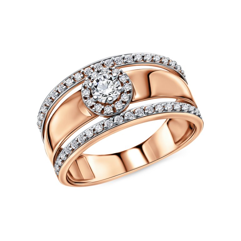 Кольцо, вставка: фианит бесцветный; Розовое золото 585 пробы.