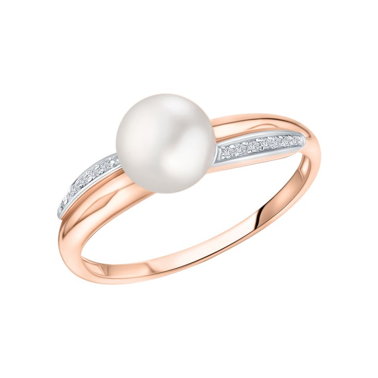 Кольцо с 14 бриллиантами природными, 0.03 карат, огранка круг 17 граней, цвет 2, чистота 2, тип огранки Б; 1 жемчугом культивированным, 2.84 карат, тип огранки В; Розовое золото 585 пробы.