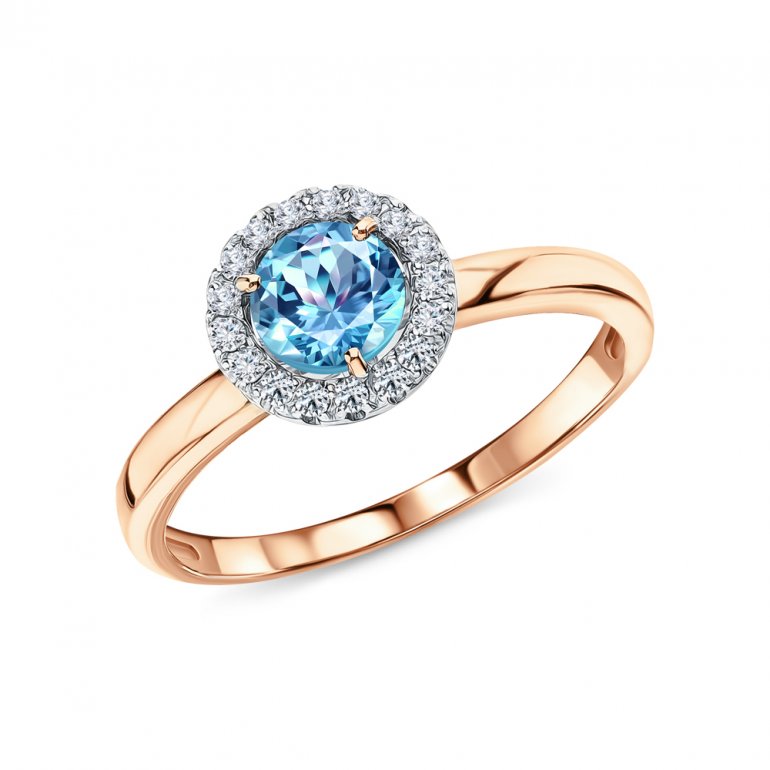 Кольцо с 1 топазом свисс природным, 0.525 карат, тип огранки В; 17 бриллиантами, 0.068 карат, огранка круг 17 граней, цвет 2, чистота 2, тип огранки А; Розовое золото 585 пробы.