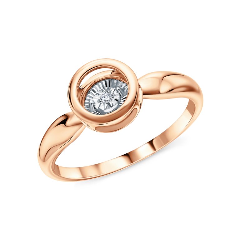 Кольцо с 1 бриллиантом природным, 0.007 карат, огранка круг 57 граней, цвет 4, чистота 5, тип огранки А; Розовое и белое золото 585 пробы.