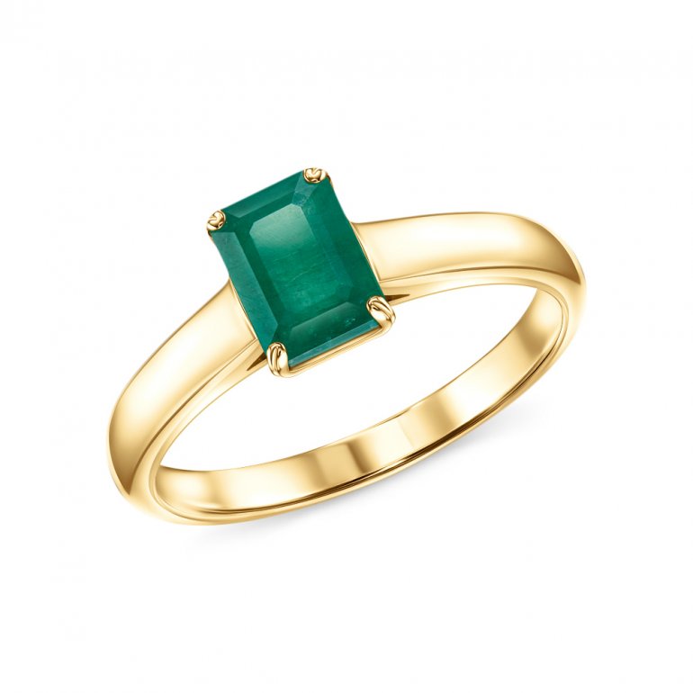 Кольцо с 1 изумрудом природным, 0.86 карат, цвет 3, чистота 3, тип огранки Б; Желтое золото 585 пробы.