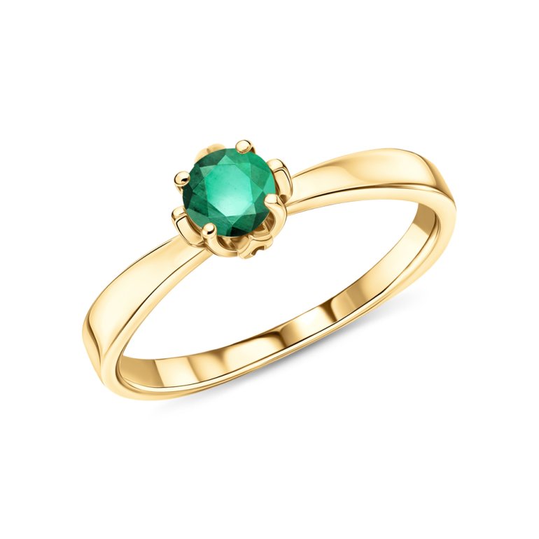 Кольцо с 1 изумрудом природным, 0.268 карат, цвет 3, чистота 3, тип огранки В; Желтое золото 585 пробы.