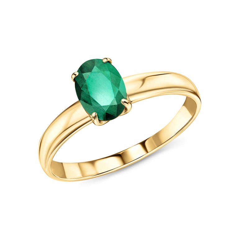 Кольцо с 1 изумрудом природным, 0.668 карат, цвет 3, чистота 3, тип огранки Б; Желтое золото 585 пробы.