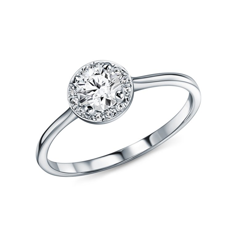 Кольцо с 1 топазом бесцветным, 0.314 карат, тип огранки В; 12 бриллиантами, 0.029 карат, огранка круг 17 граней, цвет 2, чистота 2, тип огранки А; Белое золото 585 пробы.