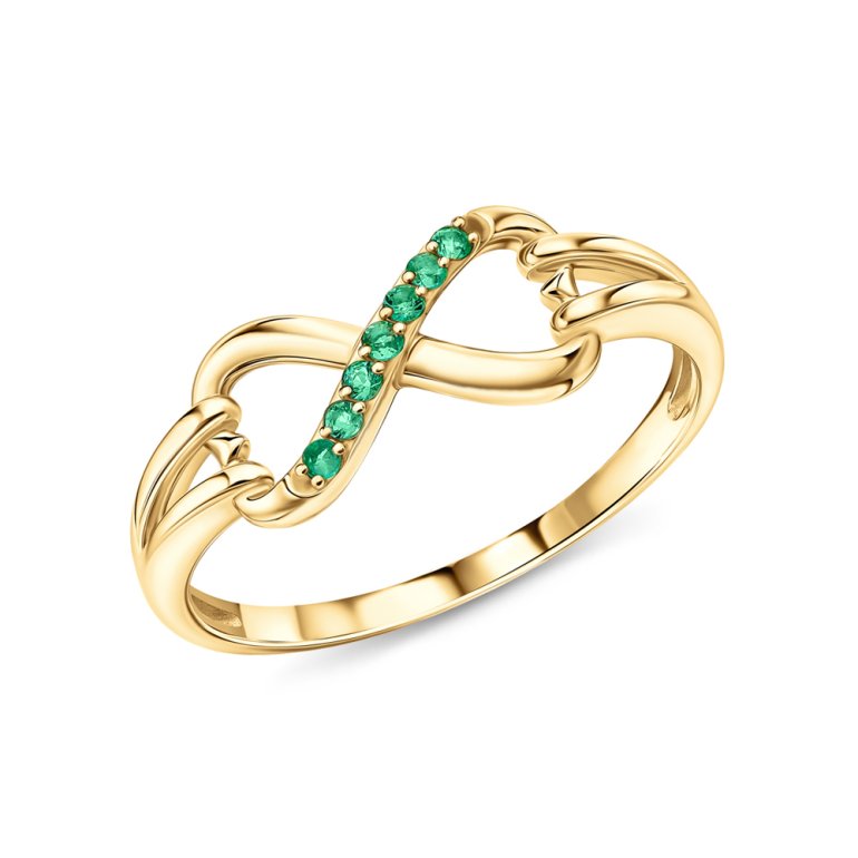 Кольцо с 7 изумрудами природными, 0.043 карат, цвет 3, чистота 3, тип огранки В; Желтое золото 585 пробы.