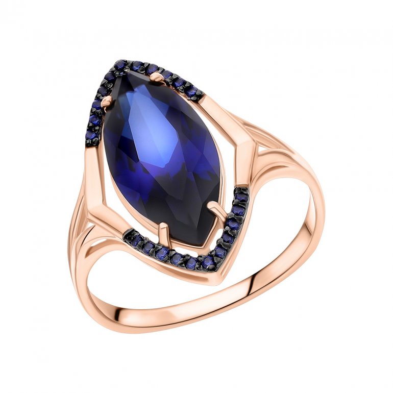 Кольцо с 1 сапфиром синтетическим, 4.84 карат, тип огранки Б; 22 сапфирами синтетическими, 0.125 карат, тип огранки В; Розовое золото 585 пробы.