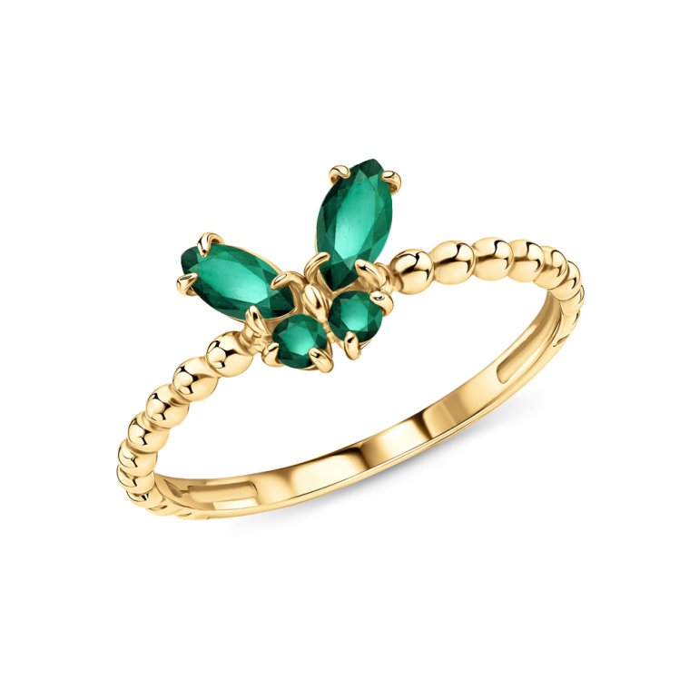 Кольцо с 2 изумрудами природными, 0.231 карат, цвет 3, чистота 3, тип огранки Б; 2 изумрудами природными, 0.056 карат, цвет 3, чистота 3, тип огранки В; Желтое золото 585 пробы.