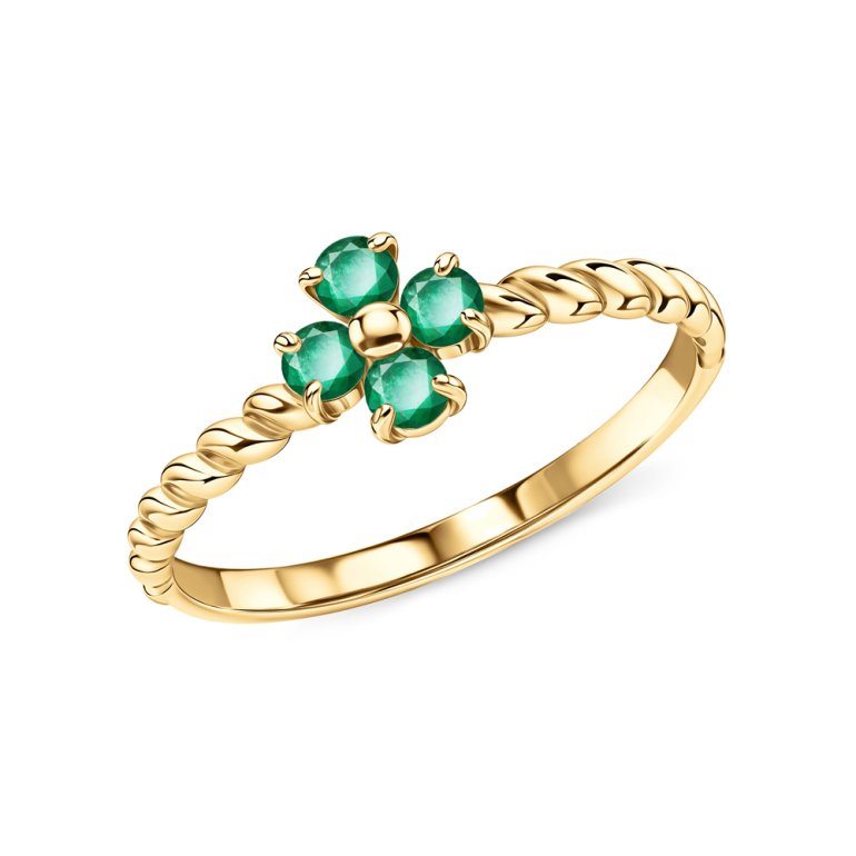 Кольцо с 4 изумрудами природными, 0.206 карат, цвет 3, чистота 3, тип огранки В; Желтое золото 585 пробы.