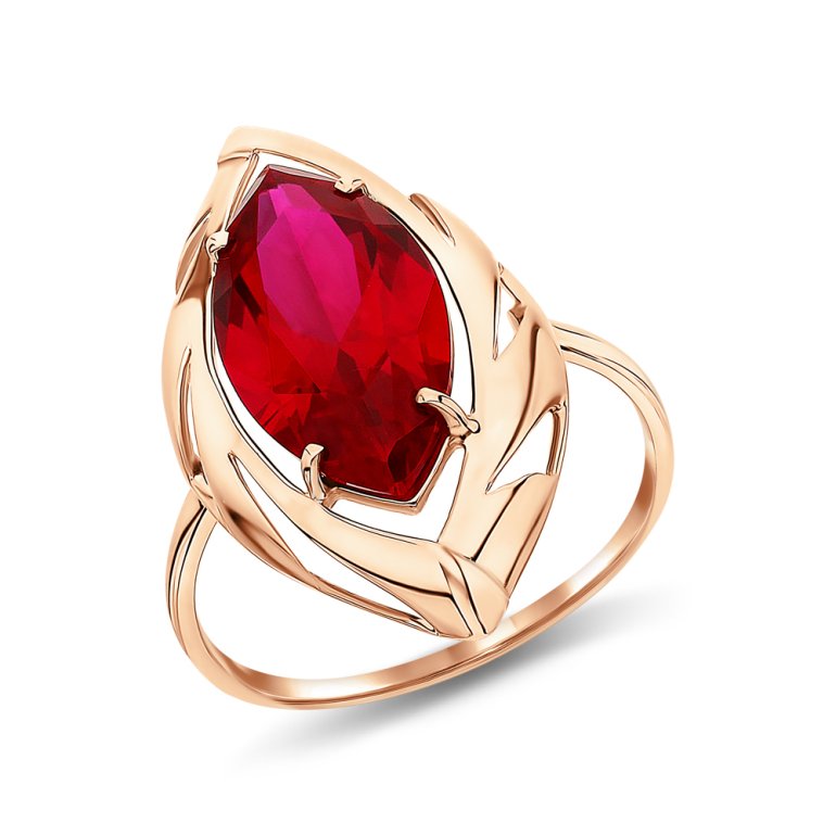 Кольцо с 1 рубином синтетическим, 4.505 карат, тип огранки Б; Розовое золото 585 пробы.