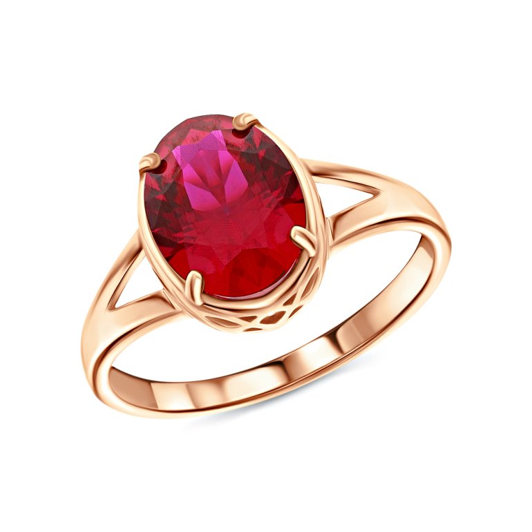 Кольцо с 1 рубином синтетическим, 2.93 карат, тип огранки Б; Розовое золото 585 пробы.