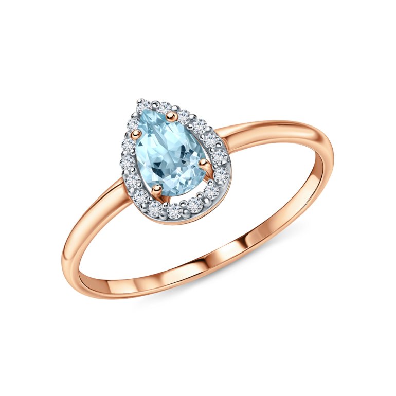 Кольцо с 1 топазом скай природным, 0.5 карат, тип огранки Б; фианитом бесцветным; Розовое золото 375 пробы.