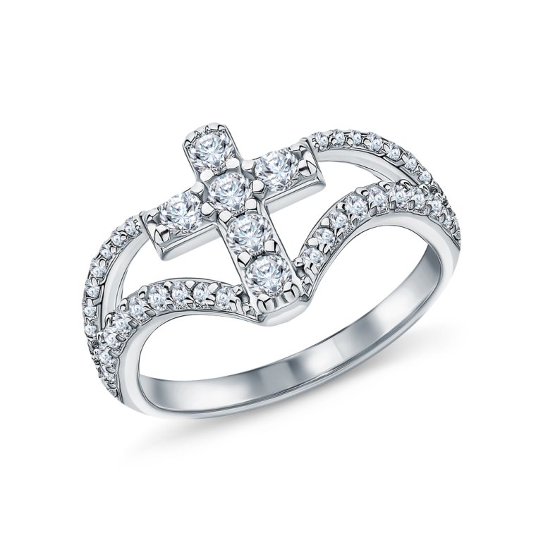 Кольцо, вставка: фианитом бесцветным; Серебро 925 пробы.