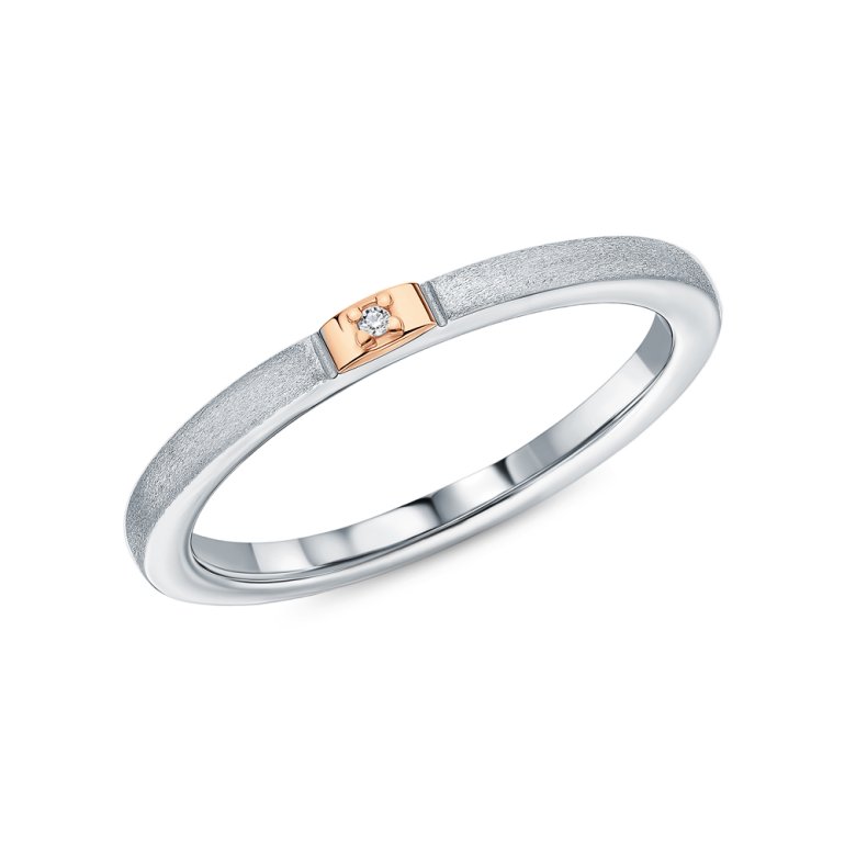 Кольцо с 1 бриллиантом природным, 0.004 карат, огранка круг 17 граней, цвет 2, чистота 3, тип огранки Б; элементы из золота Au585, 0.004 карат; Серебро 925 пробы.