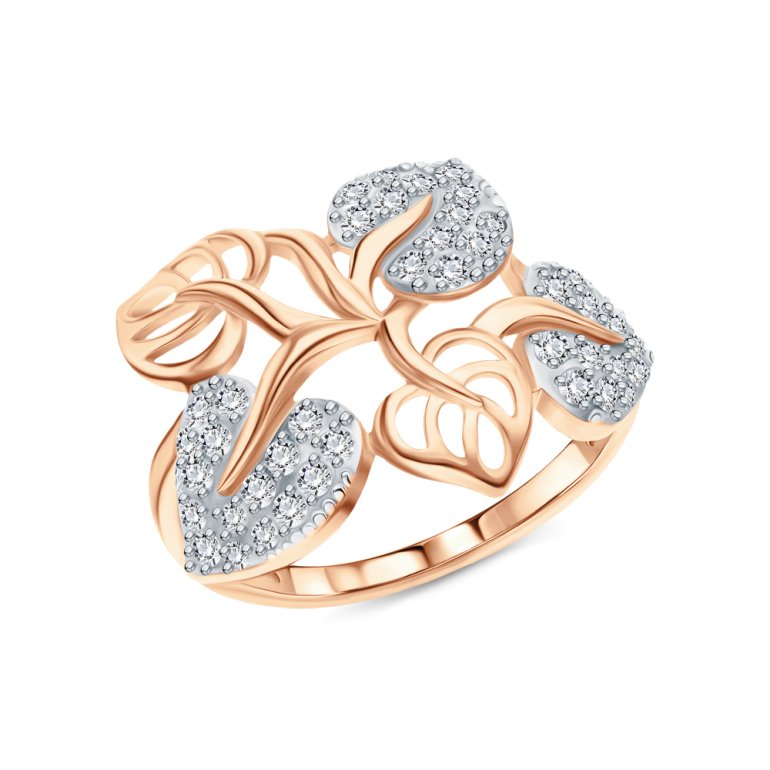 Кольцо, вставка: фианит бесцветный;  фианит бесцветный; Розовое золото 585 пробы.