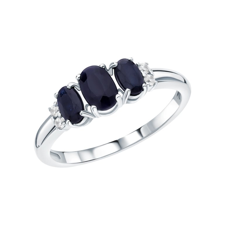 Кольцо с 1 сапфиром, 0.575 карат, цвет 2, чистота 2, тип огранки Б; 2 сапфирами, 0.609 карат, цвет 2, чистота 2, тип огранки Б; фианитом бесцветным; Серебро 925 пробы.