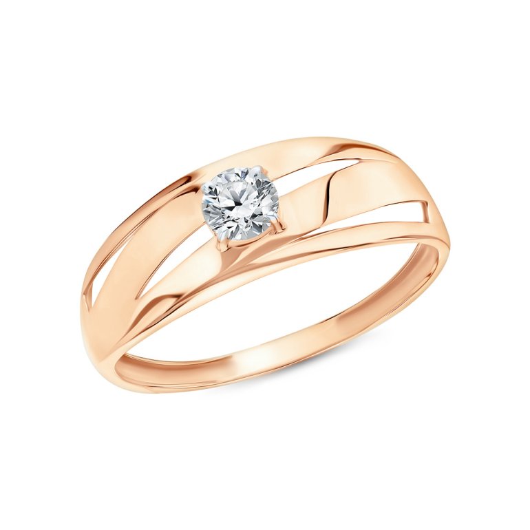 Кольцо, вставка: фианитом бесцветным; Розовое золото 585 пробы.